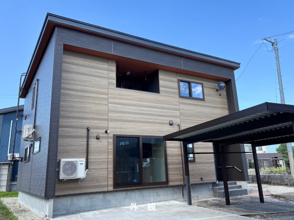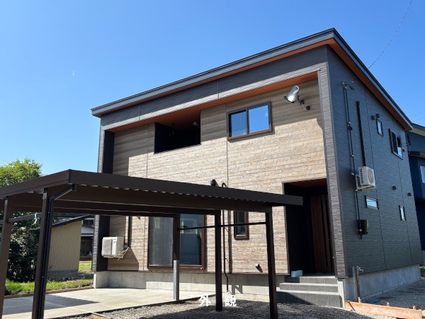 ●ダークブラウンと木目調が目を惹く シンプルモダンな外観