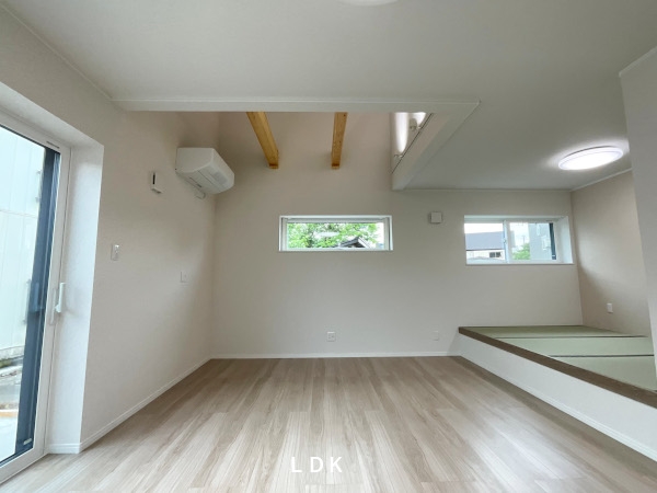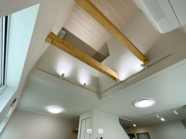 ●大きな掃出し窓と梁表しの吹抜けで開放感溢れるLDK