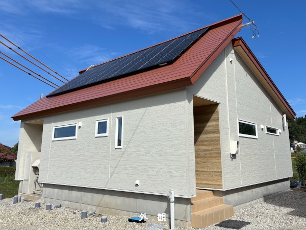 省エネ住宅について熱心に勉強してきたお施主様。どのレベルの省エネ性能を目指すのか。断熱材や換気、設備機器の性能までじっくり考慮し家づくりを進めていきました。最終的に太陽光パネル、蓄電池を設置した創畜連携システムを導入した、新庄ではおそらく数等しかない『ZEH』住宅が完成しました。